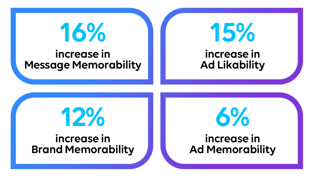 Why should you care about improved Ad and Brand recall and resonance metrics? Because they directly translate to consumer conversions. MarketCast data reveals that highly resonant ads—those that generate strong Ad and Brand Recall—can increase consumer sales, retail visits, and website traffic by up to 5%.