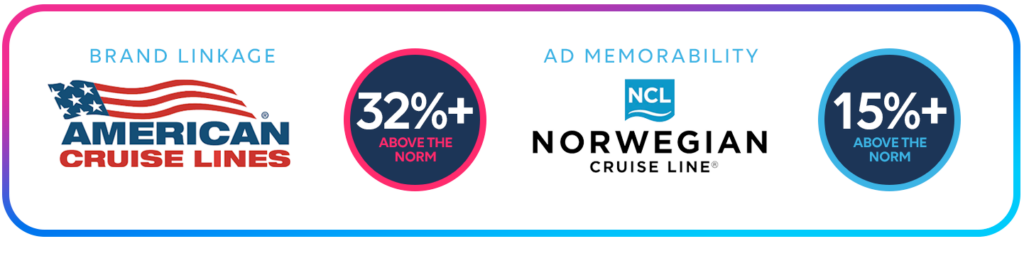 American Cruise Lines led in branding with “Explore More of America – Southeast Coast,” driving a 32 percentage point lift in Brand Linkage—the highest of the group.