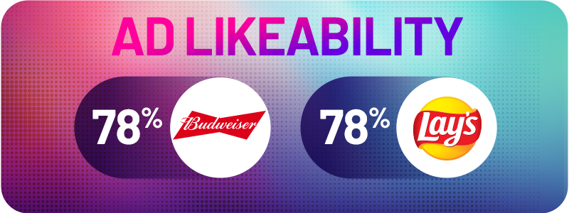 Lay’s and Budweiser tied for first place with 78% Ad Likeability, earning a spot among the most liked Super Bowl ads of the decade.