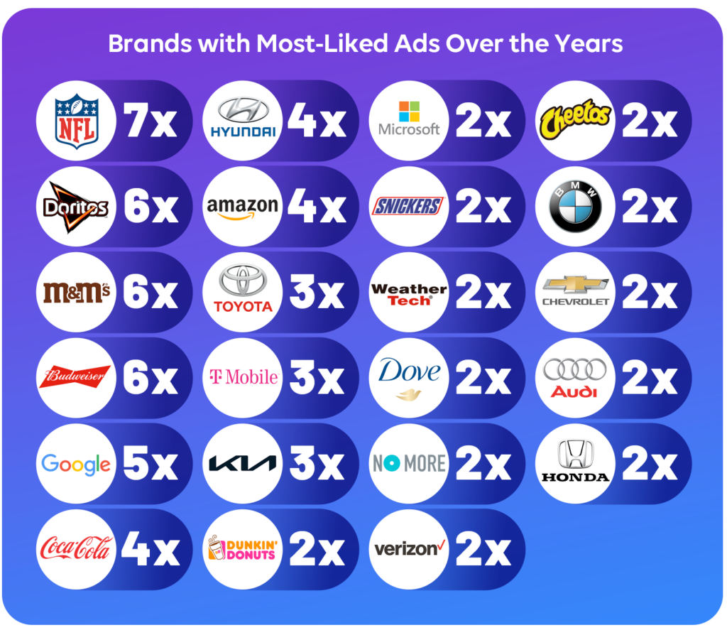 These brands have landed in the top 10 most-liked Super Bowl ads multiple times over the years:
